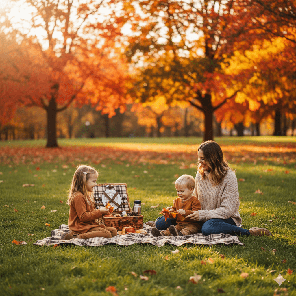 19. Journée pique-nique au parc : Préparer les paniers et les couvertures pour un pique-nique en extérieur. Profiter du soleil d'automne dans un parc ou un jardin, une belle manière de recharger les batteries.
